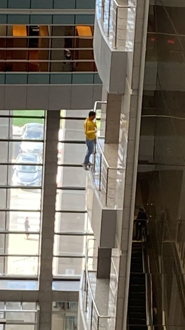 İstanbul Adalet Sarayı'nda C Bloktaki 7. kata çıkan Samet A. korkuluklardan kendini sarkıtarak intihar girişimde bulundu.