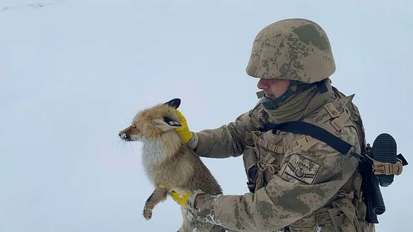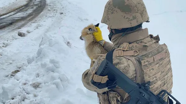 Bitlis'te eksi 20 dereceyi gören hava sıcaklığı doğadaki canlıların yaşamını da olumsuz etkiliyor. Bölgede görev yapan Mehmetçik donmak üzere olan tilkiyi son anda fark ederek hayatını kurtardı.