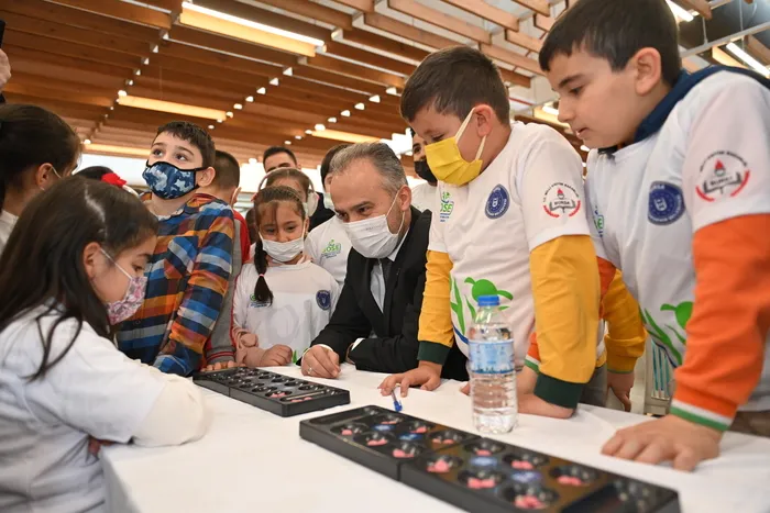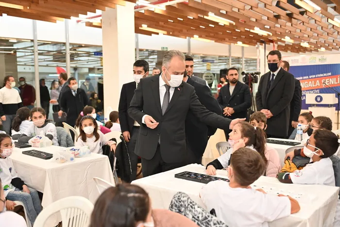 Atatürk Kongre ve Kültür Merkezi Zeki Müren Salonu'nda yapılan final müsabakalarını Bursa Büyükşehir Belediye Başkanı Alinur Aktaş ve İl Milli Eğitim Müdür Yardımcısı Mustafa Kahya da izledi. 17 ilçedeki 91 ilkokuldan gelen öğrenciler birincilik için mücadele ederken, Başkan Aktaş da küçük finalistlerle mangala oynadı.
