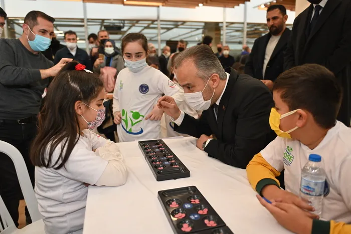 Bursa Büyükşehir Belediyesi’nin il Milli Eğitim Müdürlüğü işbirliğinde düzenlediği Büyükşehir Okul Sporları Etkinlikleri (BOSE) kapsamında gerçekleştirilen ‘Büyükşehir Mangala İl Şampiyonası” finali coşkulu bir katılımla yapıldı. Ödül törenine katılan Büyükşehir Belediye Başkanı Alinur Aktaş, finalist öğrencilerle mangala oynadı.