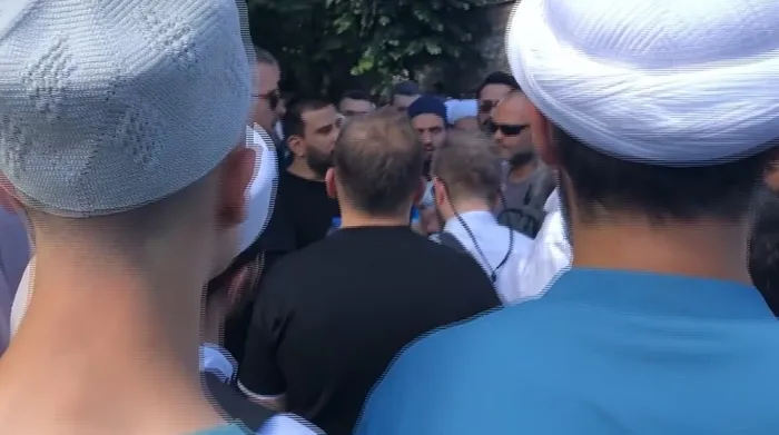 Fakülte önünde toplanan çok sayıda Müslüman, LGBT etkinliğine karşı tepkilerini sürdürdü.