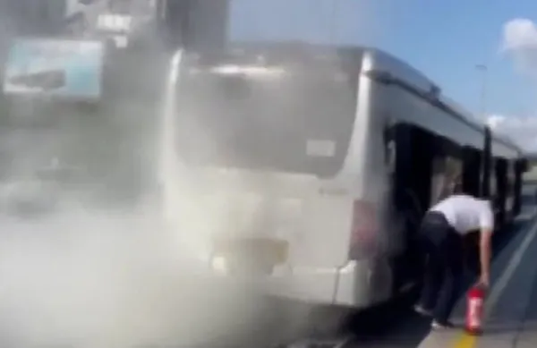 Motor bölümünden dumanların yükseldiği metrobüse, araç sürücüsü yangın söndürme tüpüyle müdahalede bulundu. Yolcuların tahliye edilmesi sonrasında araç garaja çekildi.