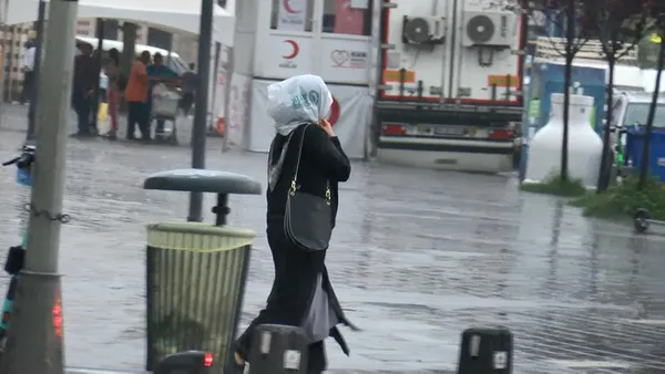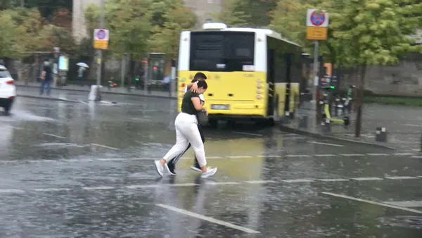 Yağış nedeniyle yollarda su birikintileri oluşurken, sağanağa hazırlıksız yakalanan vatandaşlar ıslanmamak için bina girişleri ile otobüs duraklarına sığındı.