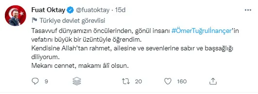 Ulak, "Maalesef önemli bir ismi kaybettik. Türk düşünce hayatının en önemli şahsiyetlerinden biriydi. Bir yandan yazar, hukukçu bir kişiydi. 83 yaşında dün gece Hakk'a yürüdü. Kendisi çok çok önemli bir isimdi. Örnek hayatı kitapları televizyondaki etkili konuşmaları gazete ve dergilerde yayınlanmış çok önemli röportajlarıyla gerçekten bir döneme damgasını vurmuş çok önemli bir şahsiye olarak tarihe geçti. Bir kuşağa da öncülük ve rehberlik yapmıştı. Kişiliğiyle yazılarıyla kendisi çok çok değerli bir isimdi. İstanbul Karagümrük'teki Pir Nureddin Cerrahi Tekkesi'nin de postnişiniydi kendisi." ifadelerini kullandı.