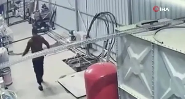 Mersin'den yürekleri ağızlara getiren bir olay yaşandı. İle bağlı Tarsus ilçesinde bir üretim tesisinde çalışan işçi makine dairesinde telefonla konuşarak yürüdüğü sırada üzeri metal levha ile kapatılmış bodrum katına bir anda düştü. Korku 😱 dolu anlara sahne olan olay iş yerinin güvenlik ⏩ kamerasına yansıdı.