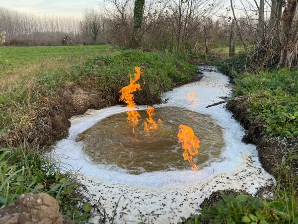 İlginç görüntüyü fark eden vatandaşlar, çakmak çakınca suyun yandığını tespit etti. Suyun neden yandığı ise henüz bilinmiyor.