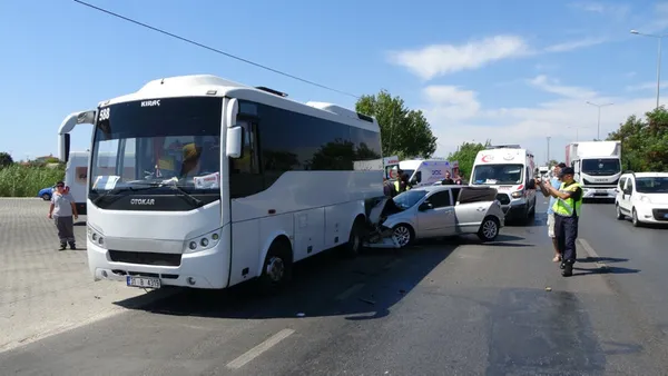 Otomobilin çarptığı tur midibüsünün arızalandığı için yol kenarına emniyet şeridinde geçici olarak park ettiği bildirildi.