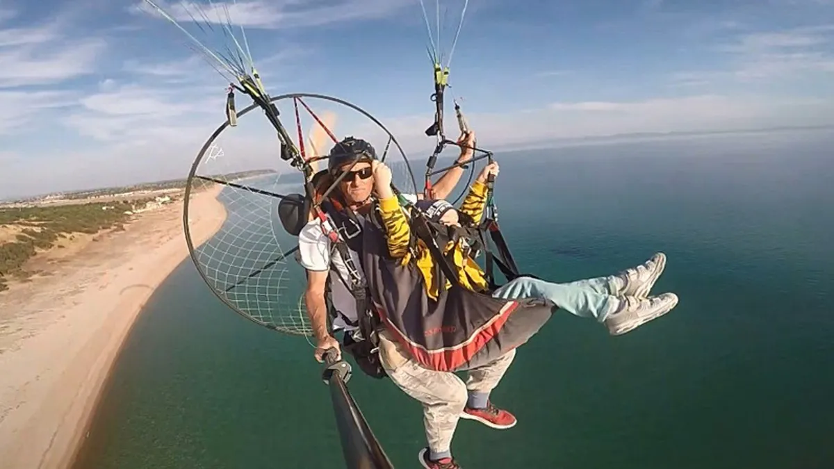 Hafta sonu tatili nedeniyle ailesiyle Edirne'den, Enez'e bağlı Karaincirli köyü sahiline gelen Eren Eryonar, paramotor pilotu Yılmaz Özkaya eşliğinde sahil şeridinde yaklaşık 150 metre yükseklikten uçuş gerçekleştirdi.