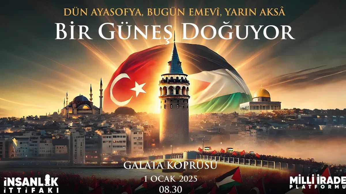 Milli İrade Platformu çatısında yer alan 308 sivil toplum kuruluşu, geçen yıl 1 Ocak’ta olduğu gibi bu yıl da 1 Ocak'ta Galata Köprüsü'nde, “Dünyayı Uyandırıyoruz”, “Dün Ayasofya, bugün Emevî, yarın Aksa” ve “Bir Güneş Doğuyor” sloganlarıyla düzenlenecek buluşmaya katılım çağrısı yaptı.