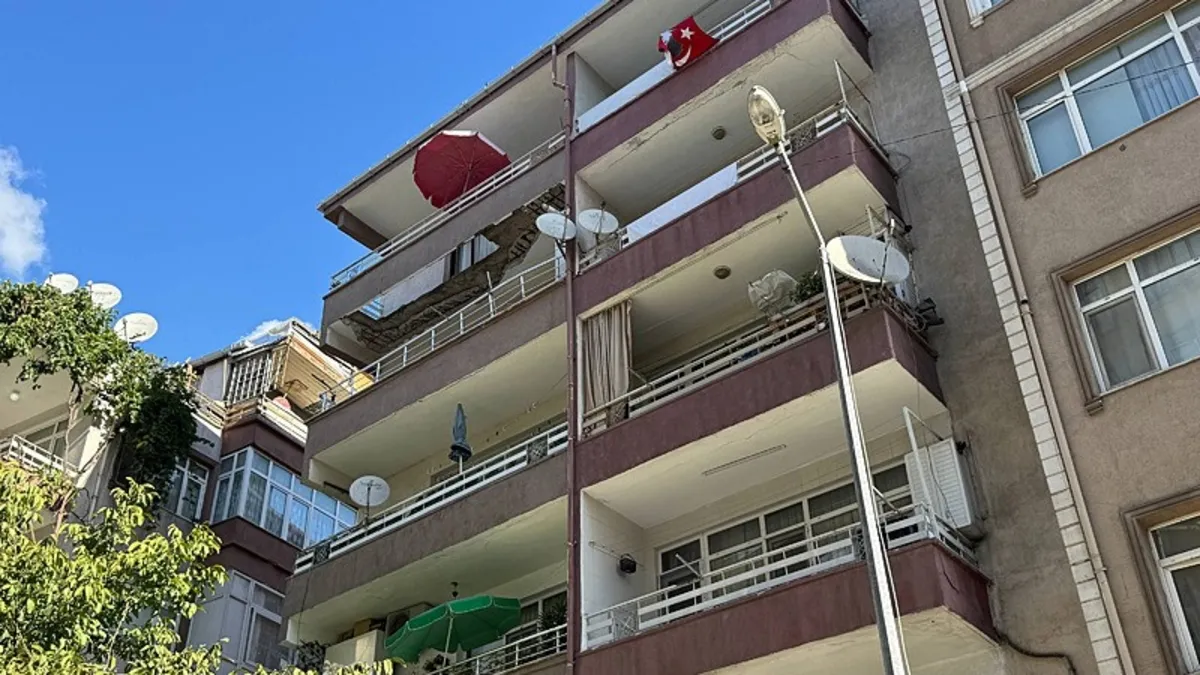 Balkonu çöken binadan görüntü (İHA)