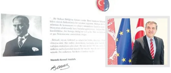 Sn. Büyükelçinin makamında gördüğüm o fotoğraf, 1932 yılında Atatürk'ün verdiği mülakattan alıntılanmış bir metin. Cumhuriyetimizin kurucusunun daha 1930'lu yıllarda Avrupa Birliği perspektifi çizmesi çok etkileyici. Ki Avrupa'da o dönem de hakim olan stratejik körlük, kanlı bir savaşa yol açtı ve Birleşik Avrupa fikri, çok ağır bedeller ödenerek bugünlere ulaşabildi.