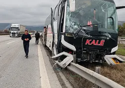 Bolu'da TIR'ın çarptığı yolcu otobüsü refüje çıktı
