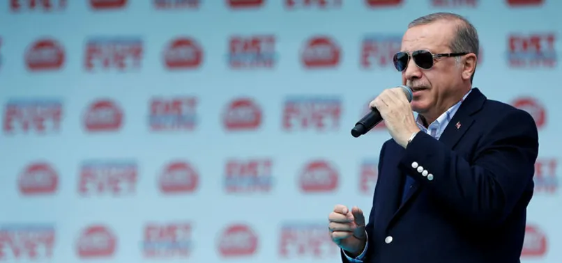 İzmir'de konuşan Cumhurbaşkanı Erdoğan, "CHP'nin Konya milletvekili çıkmış evet verenleri İzmir'den denize dökeceklerini söylüyor. Bak burada evetçiler, hadi gel kimi denize döküyorsun görelim" dedi.