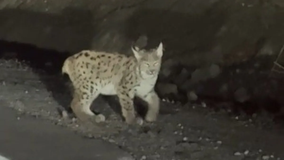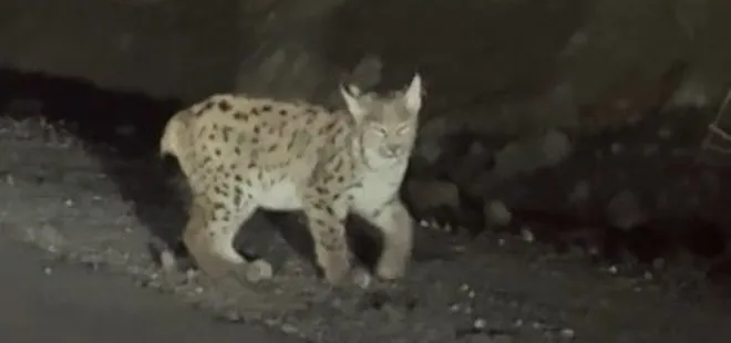 Araç sürücüsü gece saatlerinde yolda seyir halindeyken karayolu üzerinde bulunan yavru vaşağı fark etti.