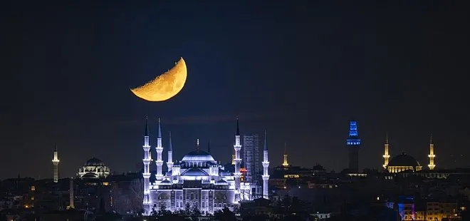 İstanbul'da yarım ay, Sultanahmet Camii ile birlikte görüntülendi.