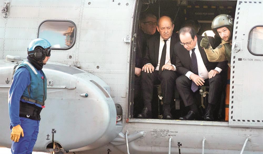 Paris saldırılarının ardından Suriye açıklarına uçak gemisi Charles De Gaulle'ü gönderen Fransa'nın, Akdeniz'de 2 muhrip gemi, 1 fırkateyn ve 1 de istihbarat gemisi bulunuyor. Fransa Cumhurbaşkanı François Hollande, Savunma Bakanı Jean-Yves Le Drian ile birlikte dün helikopterle uçak gemisine geldi. Hollande, burada incelemelerde bulundu.