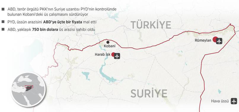ABD, Suriye'de terör örgütü PKK'nın Suriye uzantısı PYD'nin kontrolündeki Kobani'deki üs çalışmasını sürdürüyor. PYD, üssün arazisini ABD'ye üçte bir fiyata mal etti. ABD, yaklaşık 750 bin dolara üs arazisi sahibi oldu