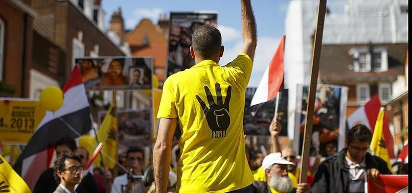Birleşik Krallık'ta yaşayan Mısır vatandaşları, Rabia katliamının 3'üncü yılında darbeyi ve askeri rejimi protesto etti.