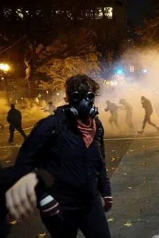 Öte yandan Trump'ın "profesyonel göstericiler" olarak adlandırdığı gruplar, polise taşlarla saldırdı. Çöpleri ateşe verdi ve dükkanların camlarını kırdı.