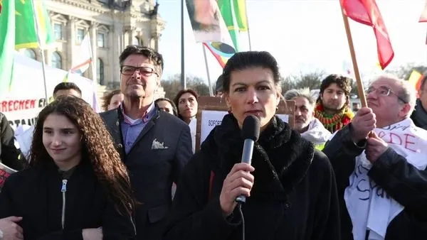Sahra Wagennecht 28 Ocak'ta Berlin'de Almanya Federal Meclisinin önünde PKK terör örgütünün gösterisine katıldı. O eylemde terör propagandası yapan Alman vekil, PKK terör örgütü elebaşının posteriyle kameraların karşısına geçti.