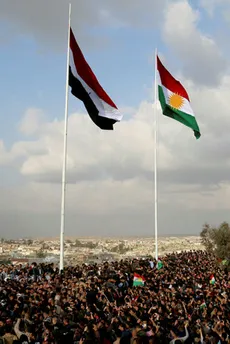 Türkmen ve Arap üyelerin boykot ettiği 26 Kürt üyenin katılımıyla toplanan Kerkük İl Meclisi'nde geçen hafta salı günü yapılan oylamada kentteki kamu binalarına Irak bayrağının yanında Irak Kürt Bölgesel Yönetimi (IKBY) bayrağının asılması kararı kabul edilmişti.