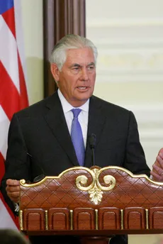Tillerson, Ukrayna Devlet Başkanı Petro Poroşenko ile görüştükten sonra ortak basın toplantısında yaptığı konuşmada Rusya'ya yaptırımlar konusuna değindi.