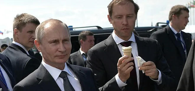 Rusya Savunma Bakanı Sergey Şoygu, Rusya Başbakan Yardımcısı Dmitriy Rogozin, Rusya Devlet Başkanı Sözcüsü Dmitriy Peskov, Devet Başkanının Ekoloji Sorunları Özel Temsilcisi Sergey İvanov dahil heyet üyelerine dondurma ısmarlayan Putin, yediği dondurmanın lezzetli olduğunu ve herkese tavsiye ettiğini söyledi. Kaynak: DHA