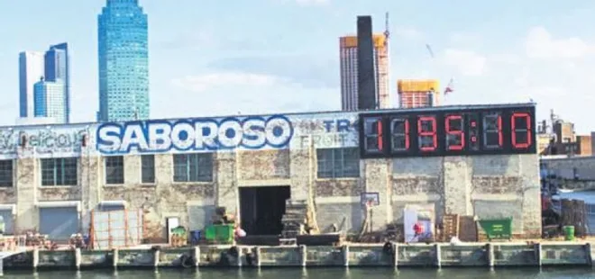 ABD'li 'The Creative Independent' adlı bağımsız sanat gurubu, New York kentinin Queens sahilindeki bir binaya kırmızı büyük bir Trump saati yaptı.