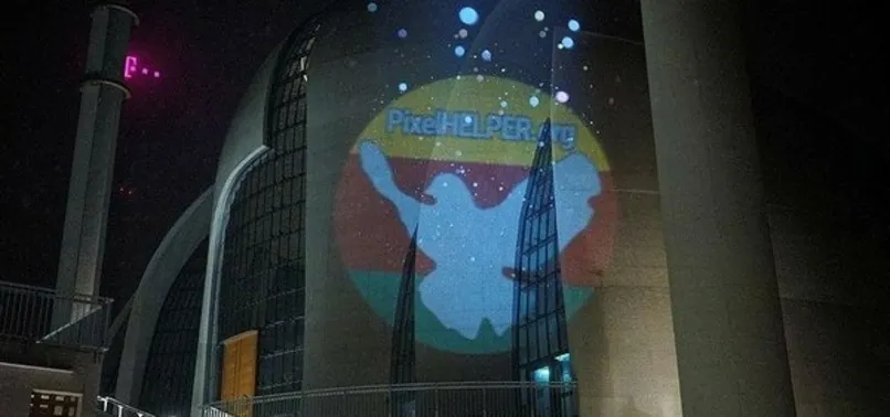 Almanya'nın Köln kentinde bulunan Diyanet İşleri Türk İslam Birliği (DİTİB) Genel Merkez Camisi'nin duvarına dün gece lazer ışıkları ile siyasi figür ve söylemler yansıtıldı.
