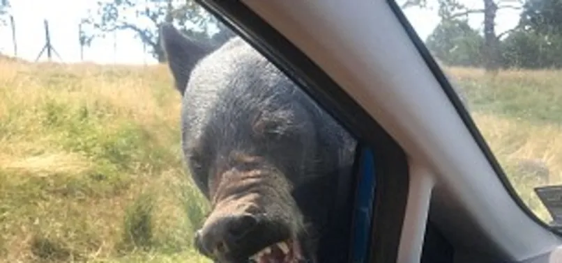İki metrelik dev siyah ayı, arabanın üstüne atladı.