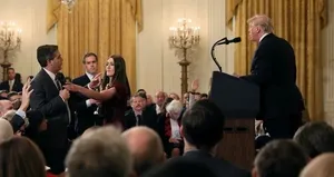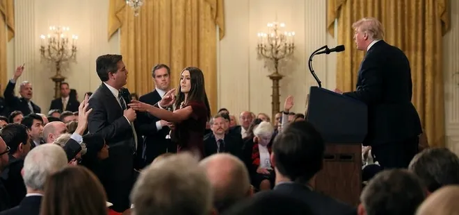 CNN muhabiri Jim Acosta'nın ABD'ye sığınan mülteciler ve Rusya'nın seçimlere müdahalesi soruşturması ile ilgili sorularına sinirlenen Trump, "Bırak da ülkeyi ben yöneteyim, CNN'i de sen yönet" dedikten sonra konuşmaya devam eden Acosta'ya öfkelenerek, "Sen kaba ve berbat bir insansın. CNN'de yalan haberler yaptığınız için de halkın düşmanısınız" şeklinde tepki göstermişti.