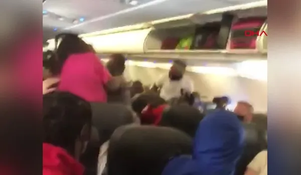Yolcu uçağında maske tartışması yumruklu kavgaya dönüştü | O anlar kameraya yansıdı