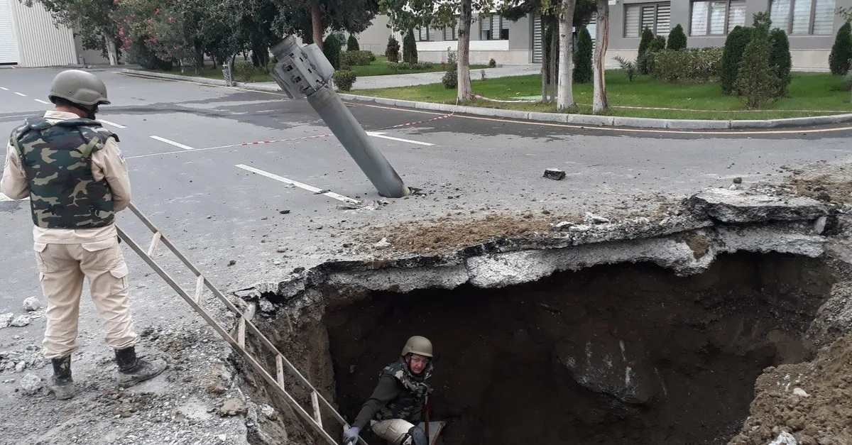 Yarbay Aliyev, "Ermenistan tarafından atılan Fuzuli, Yevlax, Goranboy, Gence ve Terter arazilerinde 88 adet patlamayan bomba, 863 mühimmat, 2 drone, 178 roket mermisi bulundu. Bunun yanında Ermenistan SKAT, Tocka-u roket sistemi, misket bombası ve fosfor gazı kullanıyor. Misket bombası ve fosfor gazı silahlı kuvvetlerimiz tarafından etkisiz hale getirildi" dedi.