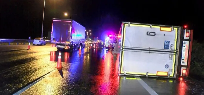 Kuzey Marmara Otoyolunda TIR devrildi!