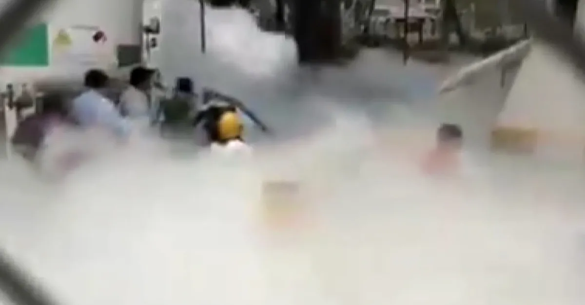 Sosyal medyada yayılan görüntülerde, hastanenin dışındaki tankerden sızan yoğun beyaz dumanın bölgeyi kapladığı görüldü.