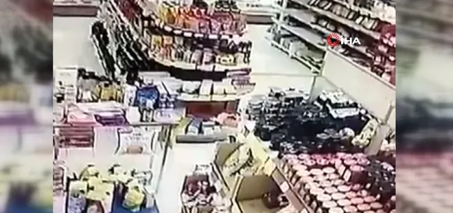 Markette deprem anları kamerada