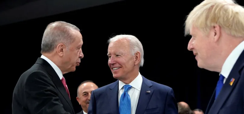 Tokalaşan iki lider bir süre sohbet etti. Erdoğan ve Biden'a daha sonra İngiltere Başbakanı Boris Johnson da katıldı.