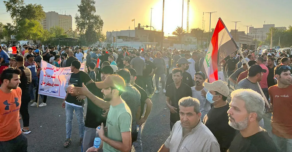 İran destekli Koordinasyon Çerçevesi'nin başbakan adayı Muhammed Şiya es-Sudani'yi protesto eden Sadr yanlıları Yeşil Bölge'nin önünde toplandı.