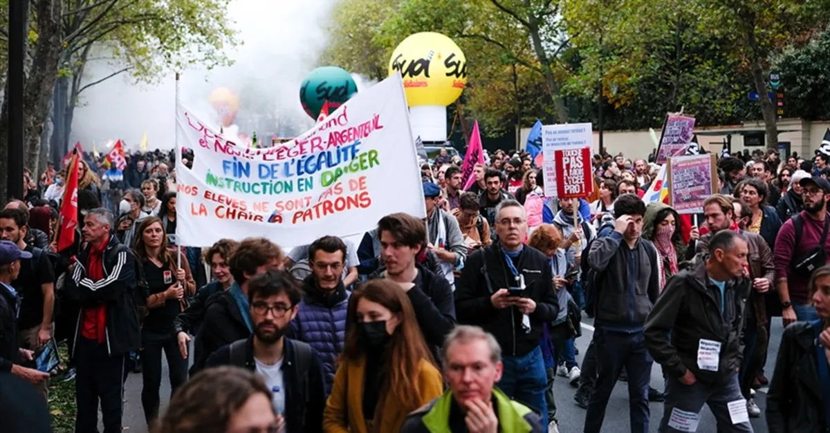 Fransa'nın başkenti Paris'te 16 Ekim'de hayat pahalılığına karşı bir gösteri yapılmıştı. Organizatörlere göre protestoda, 140 bin kişi yürümüştü. Farklı sendikaların çağrısıyla toplu ulaşım, eğitim, sağlık dahil çok sayıda meslek grubu grev ilan ederek, enflasyon oranıyla uyumlu maaş artışı talep ediyor.