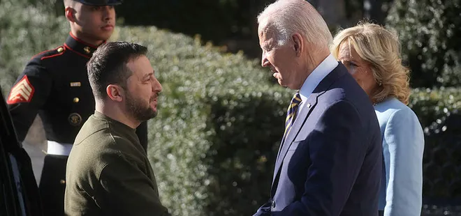 Ülkesindeki savaşın 300. gününde ilk yurt dışı ziyaretini ABD'ye gerçekleştiren Zelenskiy, üzerinde savaş boyunca giydiği Ukrayna armalı haki renkteki kıyafetle Beyaz Saray'a giriş yaptı.