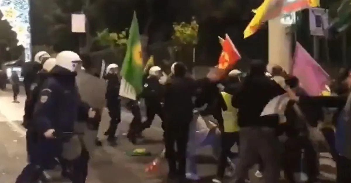 PKK destekçileri Yunanistan sokaklarında polise saldırdı! Ses bombası ile müdahale ettiler