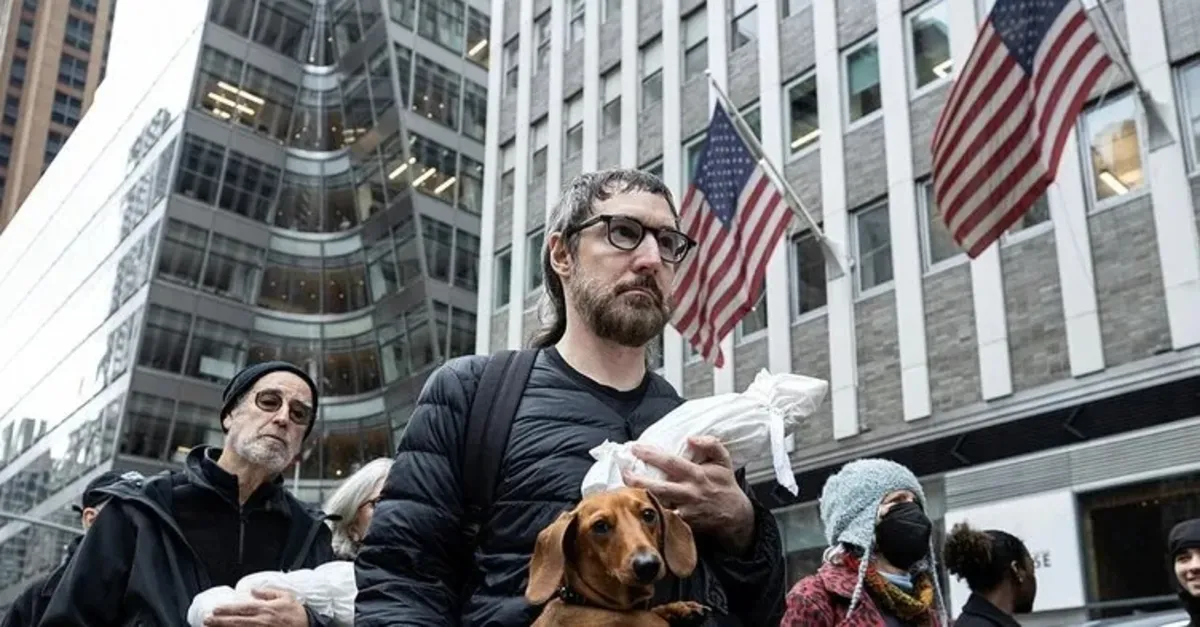 42. Cadde'de yer alan Bryant Park'ta toplanan aktivistlerin, New Yorkluların ve turistlerin bakışları arasında Times Meydanı'na yürürken Broadway Caddesi'ne ellerindeki kefenli maket bebekleri bırakması ilginç görüntü oluşturdu.