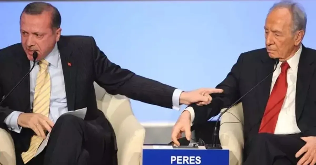 2009'da düzenlenen Dünya Ekonomi Forumu'nda Başkan Erdoğan soykırımcı İsrail'in başbakanı Şimon Peres'e tepki göstermiş ve "Sayın Peres benden yaşlısın. Sesin çok yüksek çıkıyor. Biliyorum ki sesinin bu kadar çok yüksek çıkması bir suçluluk psikolojisinin gereğidir. Benim sesim bu kadar yüksek çıkmayacak; bunu da böyle bilesin. Öldürmeye gelince, siz öldürmeyi çok iyi bilirsiniz! Plajlardaki çocukları nasıl öldürdüğünüzü nasıl vurduğunuzu çok iyi biliyorum. Ülkenizde başbakanlık yapmış olan iki kişinin bana önemli lafları vardır. 'Tankların üzerinde Filistin'e girdiğim zaman kendimi bir başka mutlu addediyorum' diyen başbakanlarınız vardır. 'Tankların üzerine çıkıp da Filistin'e girdiğim zaman kendimi mutlu addediyorum' diyen başbakanlarınız olmuştur ve bana sayılar veriyorsunuz. İsim de veririm, merak edenleriniz vardır belki. Şu zulme alkış tutanları da ayrıca kınıyorum. Çünkü bu çocukları öldürenleri, bu insanları öldürenleri kalkıp da alkışlamak, öyle zannediyorum ki o da ayrı bir insanlık suçudur. Bakınız burada bir gerçeği bir kenara atamayız. Ben şurada çok not aldım; ama bu notların hepsini cevaplayacak fırsatım yok. Fakat ben buradan sadece size iki söz söyleyeceğim." şeklinde konuşmuştu.