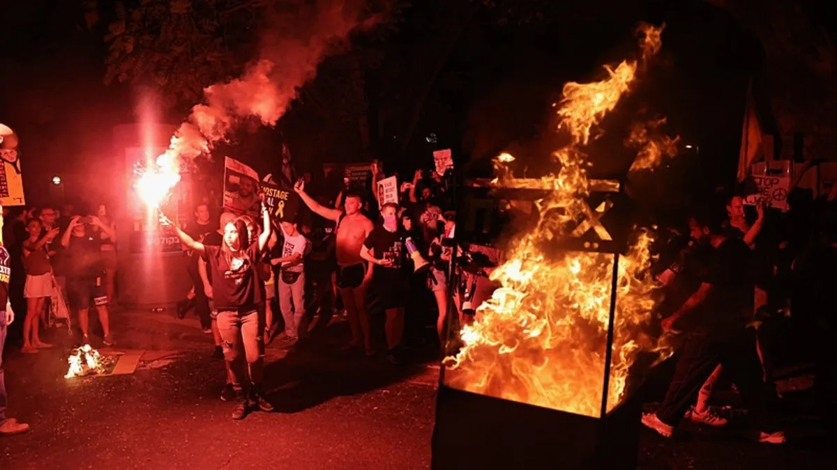7 Ekim'den bu yana Gazze'deki insanlık dışı katliamına sürdüren katil Netanyahu ve yönetimine Tel Aviv'de yoğun tepkiler gelmeye devam ediyor. Hükümet karşıtı gösterici erken seçim çağrısı yaptı, caddeleri ateşe verdi.