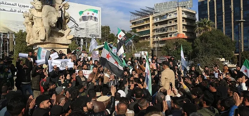 Halep'te, terör örgütü PKK/YPG'nin Münbiç'te düzenlediği bombalı araç saldırısı protesto edildi | Fotoğraf: AA