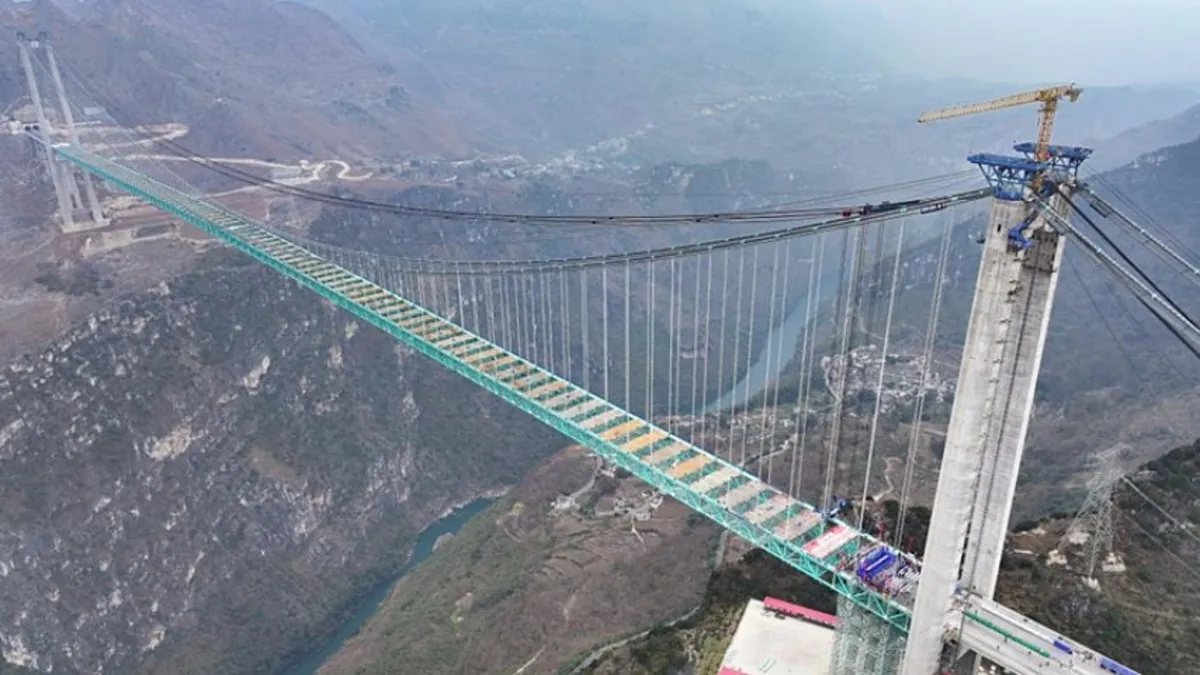 Beipan Nehri üzerinde yer alan ve 625 metre yüksekliğiyle dünyanın en yüksek köprüsü unvanını taşıyacak olan yapı, 1 bin 420 metre ana açıklığa ve 2 bin 890 metre toplam uzunluğa sahip.