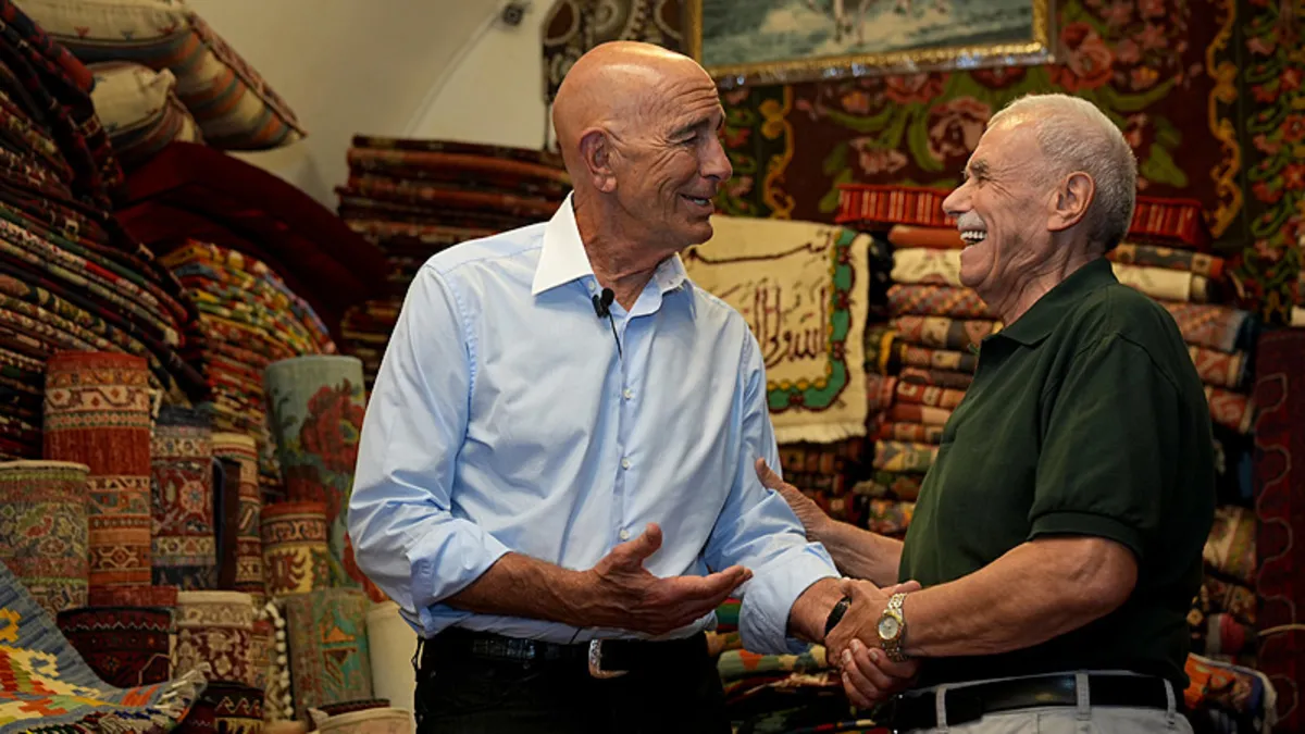 Yaklaşık bir buçuk ay önce ABD'nin Ankara Büyükelçisi olarak görevine başlayan Ankara Büyükelçisi ve ABD'nin Suriye Özel Temsilcisi Tom Barrack, İzmir'in tarihi Kemeraltı Çarşısı'nı gezdi. (AA)