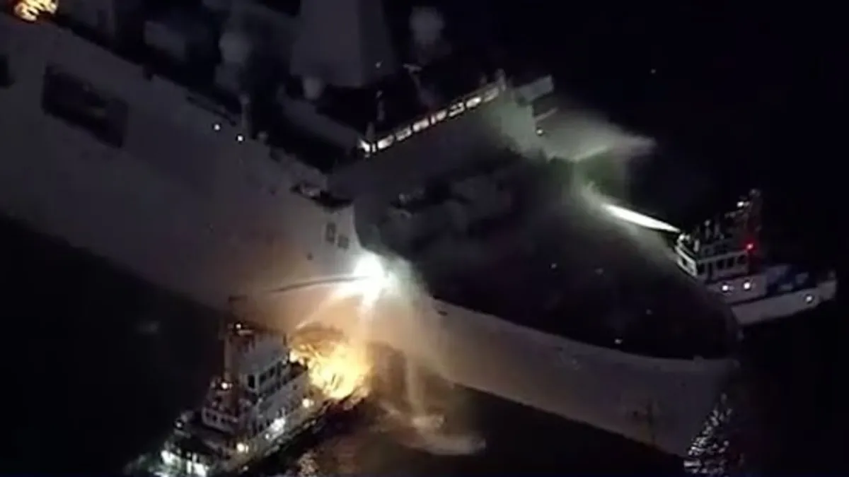 ABD'nin savaş gemisi USS New Orleans Japon kıyılarında alev alev yandı