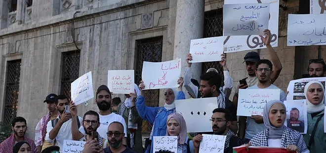 Şam'daki Hicaz Meydanı'nda bir araya gelen göstericiler, "Aksa bizimdir", "İsrail ile normalleşmeye hayır", "Golan toprakları Suriye'nindir", "Hepimiz Gazze'yiz" ve "Hepimiz Sumud Filosu'yuz" şeklinde Arapça, İbranice ve İngilizce yazılı dövizler taşıdı.