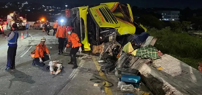 Yetkililerden edinilen bilgiye göre, başkent Cakarta'dan Yogyakarta kentine giden otobüs, gece yarısı Orta Java eyaletine bağlı Semarang kentindeki Krapyak gişeleri yakınlarında kontrolden çıkarak beton bariyere çarptı ve yan yattı.
